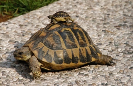 Le due nuove tartarughe, che rispondevano al nome di Jo-Jo e Briciola, uscite dalla scatola, si avviarono titubanti nell’erba del giardino.