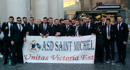 Rientra a Gioia Tauro dopo un’entusiasmante viaggio nella Capitale la Saint Michel guidata dal proprio presidente Don Gaudioso Mercuri.  Il gruppo formato da Giocatori, allenatori, dirigenti e membri dello staff oltre che dal proprio Presidente è arrivato a Roma il 16 Maggio scorso per assistere all’udienza del Santo padre di mercoledì 17, successivamente ha incontrato il Card. Comastri il quale sulla scia del primo incontro avvenuto lo scorso anno, ha nuovamente impartito una magistrale lezione di catechesi per poi procedere al rappresentativo dono della Maglia da gioco autografata da tutti i presenti, l’incontro si è concluso poi con la privilegiata visita presso la Basilica di S.Pietro.