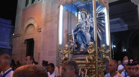 Il popolo rimase atterrito e commosso, perché riteneva questi avvenimenti premonitori divini e la statua fu portata in processione mentre gli abitanti di Radicena e Jatrinoli (l’attuale Taurianova) pregavano e si percuotevano il petto per le strade del paese. Nel cielo comparve uno spettacolo straordinario, dalla luna partirono quattro raggi perpendicolari fra di loro che disegnarono una croce di cui essa era il centro» (Cf. ROMEO-TOSCANO G., Città tra gli olivi. Taurianova, nella geografia e nella storia, Roma 1959, pp. 136; Cf. GEMELLI S., Storia, tradizioni e leggende a Polsi d’Aspromonte, Roma 1992, pp. 578). Sono fatti documentati e scientificamente immortalati dal latinista taurianovese Francesco Sofia Alessio, in versi e in una epigrafe latina conservata nella chiesa matrice di Radicena, di cui è titolare la Vergine Ss. della Montagna e nella quale si venera la statua lignea.