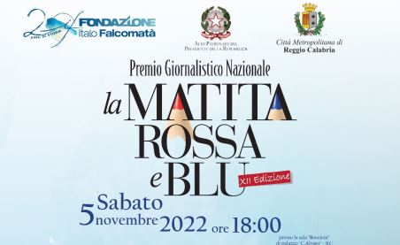 Tutto pronto per la dodicesima edizione del premio giornalistico nazionale “La matita rossa e blu” della Fondazione Italo Falcomatà. Appuntamento domani sabato 5 novembre alle ore 18.00 presso la Sala “Boccioni” di Palazzo Corrado Alvaro, sede della Città Metropolitana di Reggio Calabria, per la manifestazione che ha anche ricevuto l’Alto Patronato del Presidente della Repubblica ed il patrocinio della stessa Città Metropolitana di Reggio Calabria.