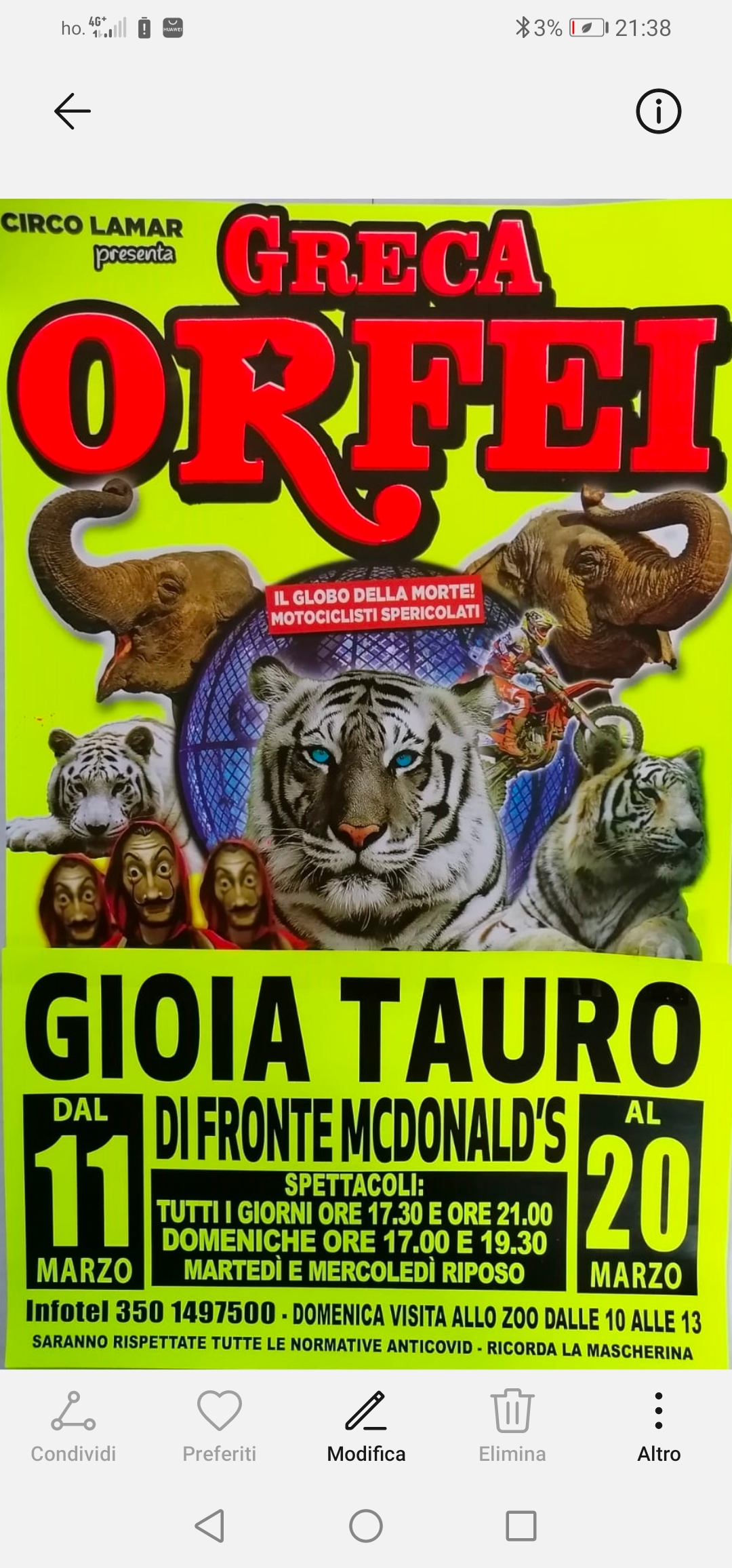 Io purtroppo mi trovo momentaneamente a Genova per un intervento ove tutto è andato bene , però richiede un periodo di convalescenza , per questo che con dispiacere non posso essere presente , ma ciò non toglie la straordinaritá dello spettacolo che vi ho portato, insieme a tutto lo staff di ottimi professionisti nel campo circense, tra cui oltre a tutti gli Artisti provenienti da varie nazioni , la grande famiglia Mavilla, Pierantoni , una eccellenza nel nostro campo .