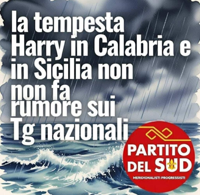 Come meridionalisti progressisti del Partito del Sud non possiamo che solidarizzare con i cittadini calabresi, siciliani e sardi che sono stati duramente colpiti dal Ciclone Harry e ora contano i danni. La protezione civile e le amministrazioni locali hanno avviato le prime stime dell’emergenza. I danni superano ampiamente il miliardo di euro. Le Regioni più colpite restano principalmente Sicilia e Calabria, con problemi concentrati soprattutto lungo le coste, dove vento e mareggiate hanno distrutto ampie parti di litorale, invaso strade e provocato crolli e allagamenti. Le due Regioni vanno verso lo stato di calamità regionale, con la richiesta al governo nazionale dello stato di emergenza.