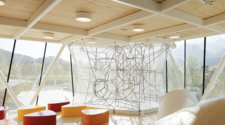Un’avventura che i bambini difficilmente dimenticheranno è il Bosco delle Sfere. Un immenso parco didattico a cielo aperto di 7.000 metri quadrati, che incanterà i bambini e farà ritornare indietro nel tempo i più grandi. Attrazione principale la Kugelbahn, la pista da biglie in legno più grande al mondo. Si snoda per oltre 500 metri a diverse altitudini e con varie angolature, facendosi strada fra pini, abeti bianchi e rossi di alta montagna. Piccoli e grandi appassionati di costruzioni si perderanno in questa straordinaria infrastruttura da gioco, immersa nel bosco, dove potranno far scivolare grandi bocce in legno, simili a quelle da bowling lungo il percorso fatto di tronchi di pino cembro, tra case sugli alberi, funi, stazioni gioco, postazioni sospese tra gli alberi. Il Bosco delle Sfere non è un semplice parco giochi. E’ un vero e proprio laboratorio didattico nella natura, dove i bambini possono apprendere attraverso workshop all’aria aperta le leggi della natura e della fisica. L’ente turistico di Hall Wattens mette a disposizione di tutti gli ospiti un “kit del perfetto fisico”: da questo momento in poi piano inclinato, forza di gravità e attrito non saranno più un segreto per i piccoli esploratori del Bosco delle Sfere. Il legno di pino cembro regala i suoi benefici anche nell’area relax pensata per i genitori: mentre i figli si divertono con la pista delle biglie mamma e papà possono rilassarsi in perfetta tranquillità nelle maxi sdraio realizzate con questo prezioso materiale naturale, posizionate in una terrazza naturale di fronte al massiccio Karwendel.