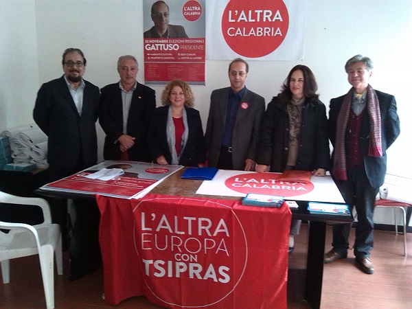 «Siamo persone impegnate nel lavoro e sul territorio, non professionisti della politica. Non la intendiamo come una professione, ma come un impegno quotidiano per la collettività che mettiamo concretamente nel lavoro, nell’associazionismo e in politica. Siamo miti col sorriso, ma determinati. Siamo persone che credono in una lista come L’Altra Calabria di qualità, al 40% femminile e rappresentativa di tutte le aree della provincia. Non siamo una forza di protesta, ma di proposta. Una lista che rappresenta la vera Sinistra». Il candidato governatore Domenico Gattuso ha presentato così la lista de L’Altra Calabria per il collegio elettorale Sud composta da Carmelo Giuseppe Nucera (presidente associazione culturale “Apodiafazzi” ed ex sindacalista), Domenico Luppino (imprenditore sociale), Rosa Inarta e Maria Carmela Monteleone (professoresse), Giuseppe Mesiano (medico), Fortunata Chindemi (impiegata Archivio di Stato) e Nicola Limoncino (segretario provinciale Rifondazione comunista). «La nostra lista nasce dall’esperienza de L’Altra Europa con Tsipras che alle scorse Europee ha ottenuto un risultato positivo, a dimostrazione che c’è attenzione verso una nuova Sinistra che vogliamo costruire. In Spagna c’è Podemos, in Grecia Syriza ed alte esperienze di Sinistra ci sono in Europa. Vogliamo crearla anche in Italia verso una “Syriza europea”. Ed in Calabria – ha affermato il docente di Ingegneria dei trasporti aspirante governatore oltre ad evocare il sostegno dell’europarlamentare de L’Altra Europa con Tsipras Barbara Spinelli e di altre personalità a L’Altra Calabria – tutto ciò mentre in Italia ci sono larghe intese e manganellate ai lavoratori. Sui giornali calabresi stiamo leggendo dell’ipotesi di inciucio Pd-Ncd-Udc, larghe intese che non hanno il coraggio di annunciare e che si avranno dopo il voto, come dimostrano le voci del senatore D’Ascola come prossimo sottosegretario ai Trasporti del Governo Renzi. Il candidato del centrosinistra Oliverio ha scavalcato a destra il suo sfidante alle primarie Callipo ed ha otto liste con dentro tutto e di più. Con quale coraggio parlano alla gente? Tolgano la parola “Sinistra” al termine “Centrosinistra”». Trasporti e Mobilità, perché «la Calabria è diventata come un’isola, visto che è durissimo muoversi o arrivarci», Ambiente e Cultura, che sono «un modo per creare lavoro ed esaltare il territorio», Beni comuni, considerato che «sono sempre più sotto attacco, quindi da difendere» e Diritto al lavoro, però «da intendere come garanzia di uguaglianza e trasparenza nelle opportunità» sono stati alcuni dei punti cardine individuati da Gattuso e dai candidati reggini nel corso di una conferenza stampa svoltasi nella sede operativa di via Filippini 25 e in occasione della quale è stato annunciato l’imminente lancio di un ampio programma politico riassunto in 20 pagine. Ed anche quello della democrazia che si affianca a quello della questione morale. «La nostra lista è stata osteggiata già in fase di raccolta firme. Altro ostacolo messoci dalla Regione è l’8% di sbarramento, una soglia sciagurata peggio delle leggi “Acerbo” e “Scelba”. Nonostante ciò, abbiamo deciso di batterci perché la situazione in Calabria è grave e vogliamo provare a risolverla. I cittadini ci votino per garantire democrazia e rappresentanza. Contro l’8% adiremo alle vie legali perché è anticostituzionale. Comunque, qualsiasi percentuale raggiungeremo, il giorno dopo il voto continueremo a lavorare tra la gente e per la gente sui territori» ha infatti concluso il professore Gattuso.