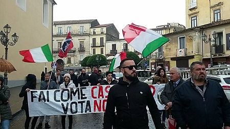 “Matteo Renzi – continua il leader regionale di CasaPound – ha inviato in Calabria la Boschi per propagandare una riforma costituzionale che in realtà è una truffa ai danni del popolo italiano. Un governo nato con manovre di palazzo, sostenuto da partiti che il giorno delle elezioni neanche esistevano, con più di 250 parlamentari che hanno cambiato casacca, non dovrebbe neanche esister, figuriamoci cambiare la costituzione. Questo governo nazionale, riscrivendo l’articolo 117 della Costituzione, vorrebbe renderci definitivamente schiavi dell’Unione Europea e dei burocrati di Bruxelles. Per non parlare poi della riforma del Senato della Repubblica che invece di abolirlo definitivamente, diventerà un costo passatempo per sindaci e consiglieri regionali”.
