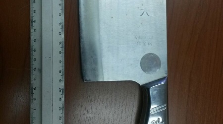 una mannaia che ha brandito contro un M.llo di Polizia Locale.