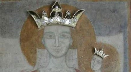 Le coroncine in oro rubate dal dipinto della Vergine con Bambinello nel Santuario della Madonna della Spina a Lamezia Terme.