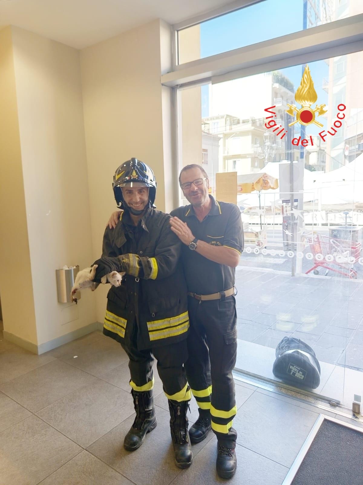 Salvataggio di un gattino da parte dei Vigili del Fuoco durante i festeggiamenti patronali