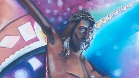 L’arte effimera riprodotta ha avuto un notevole successo ed è stata molto apprezzata, eseguita proprio davanti la Chiesa del SS. Crocifisso, un abbraccio di Cristo sulla Croce.
