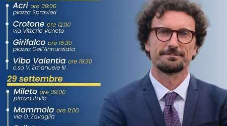 L’ex ministro alle Infrastrutture e ai Trasporti e attuale senatore del MoVimento 5 Stelle Danilo Toninelli sarà domani e dopodomani in Calabria per sostenere i candidati consiglieri M5s alla Regione Calabria e la candidata presidente per la coalizione di centrosinistra Amalia Bruni.