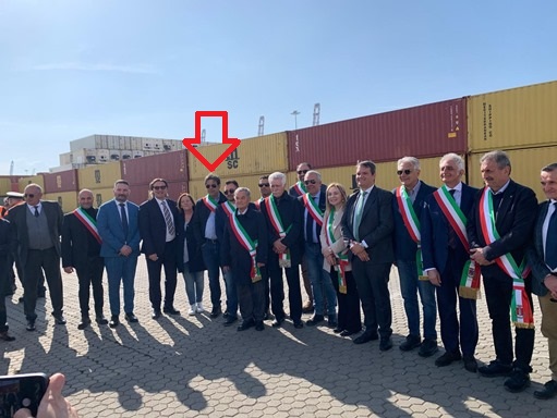 L’ex sindaco di Melicuccà Vincenzo Oliverio partecipa da “abusivo” con tanto di fascia tricolore al Porto di Gioia Tauro con la delegazione brasiliana