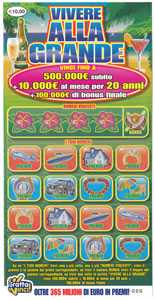 Giornata magica per il titolare del bar tabacchi Red House, ma soprattutto per il fortunato che dopo aver “grattato” il suo biglietto Vivere alla Grande, ha scoperto di essersi portato a casa 500mila subito, 10mila al mese per i prossimi vent’anni, e 100mila alla fine della rendita, per un totale di 3 milioni di Euro