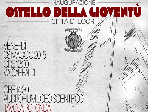 Venerdì 8 maggio 2015 verrà inaugurato l’Ostello della Gioventù di Locri, realizzato su un bene confiscato alla mafia, e che verrà così definitivamente consegnato alla Città e ai suoi cittadini. Finanziato attraverso il PON Sicurezza, la struttura sarà simbolo di vittoria della legalità sulla criminalità, ma allo stesso tempo è attività ricettiva che da la possibilità di ospitare futuri turisti che faranno tappa a Locri.