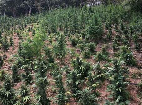 La piantagione era composta da quasi 2200 piante di altezza compresa tra i 20 cm e i 2,4 metri, la maggior parte delle quali in pieno stato vegetativo, mente l’irrigazione era garantita da un sistema costituito da centinaia di metri di tubi in polietilene a rilascio graduale d’acqua regolato da un temporizzatore.