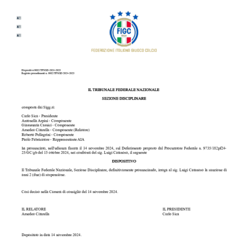 Questa vicenda non riguarda solo una questione Catanoso o l’operazione “Penalty” della Procura di Reggio Calabria, ma dovrebbe aprire ampi margini di riflessione nel mondo del calcio e in quello delle scommesse, sia sulla gestione arbitrale che sulla prevenzione delle scommesse illecite. Un controllo rigoroso con una maggiore trasparenza ad oggi risulta più che mai rigoroso per evitare che simili situazioni, come nel passato, si ripetano. L’integrità del calcio dovrà e deve essere preservata, rafforzando le misure di controllo.