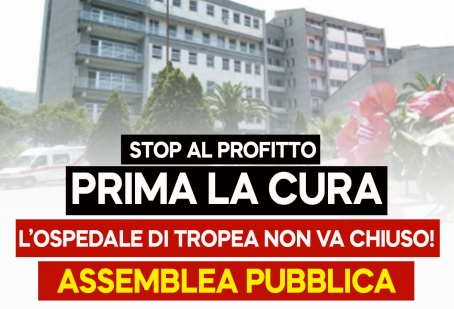 L’ospedale di Tropea non si tocca. Opponiamoci a chi lo vorrebbe chiudere e trasformare la sanità in un business. Organizziamoci per rivendicare i nostri diritti sotto le istituzioni! Ci vediamo a Tropea sabato 24 gennaio alle 16, presso la sala di palazzo Santa Chiara.