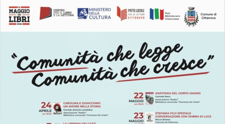 Comunità che legge, Comunità che cresce“. Questo il titolo, oltre che la missione, della rassegna culturale organizzata e promossa dall’Amministrazione comunale di Cittanova per “Il Maggio dei Libri” 2026. Quattordici appuntamenti pensati per promuovere l’importanza e la bellezza dei libri e della lettura: strumenti di crescita individuale e collettiva; strade verso nuove consapevolezze, nuove conoscenze e nuova socialità.