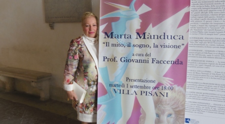 Martedì 1 settembre 2015, nelle grandi sale del maestoso Museo Nazionale Villa Pisani, alla presenza di numerose personalità, è stata inaugurata la mostra personale “Marta Mànduca: Il mito, il sogno, la visione” che vede esposte in magnifica sequenza cronologica alcune delle più belle opere dell’artista surrealista che più di tutti conquista ed affascina. A quasi un anno dalla conclusione con successo di pubblico e critica, della mostra al Museo Chiostro del Bramante a Roma, Marta Mànduca già nella prima metà del 2015 ha esposto al M.E.A.M. di Barcellona, uno dei musei più importanti della Spagna ed alla Biennale Internazionale dell’Arte di Roma, oltre ad aver ricevuto numerosi riconoscimenti ed essere inserita anche quest’anno nel Catalogo Arte Moderna n. 51 Editoriale Giorgio Mondadori. Per il Prof. Giovanni Faccenda, Presidente del Comitato Critico del suddetto catalogo, “Marta Mànduca è una grande certezza ed è tra i più importanti artisti italiani che rappresentano l’arte italiana nel mondo, un talento infinito messosi in luce nell’aristocratico ambito del Surrealismo Colto”. La nostra pittrice ora conquista uno dei musei più belli d’Italia: Villa Pisani a Stra (VE), con un evento che è stato inaugurato dal critico e curatore Prof. Giovanni Faccenda. Nei tre saloni sono esposte cinquanta opere che illustrano lo straordinario percorso artistico della “Grande Marta” in un susseguirsi di immagini surreali di grande bellezza ed impatto emotivo; “risulta un conforto, diresti perfino salutare, ritrovarsi al cospetto di pitture pervase da tante argentine emozioni” (cfr. Prof. G. Faccenda). Un motivo in più per essere orgogliosi di Marta Mànduca che proseguirà nel suo cammino artistico in Francia dove a novembre sarà ospite del Grand Palais di Parigi e poco dopo in Austria dove l’attende la città di Vienna.