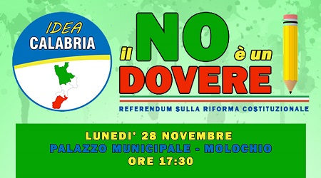 “IL NO E’ UN DOVERE “,con questo slogan, ”Idea Calabria”, intende dare il proprio contributo di conoscenza e di impegno, affinché gli elettori chiamati a pronunciarsi sul referendum costituzionale del 4 dicembre, possano esprimere con scienza e coscienza il loro punto di vista.