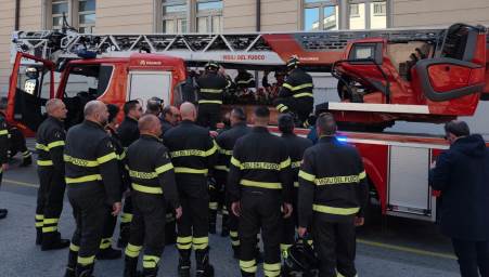 Il feretro ha raggiunto la Basilica dell’Immacolata a bordo dell’Autoscala, accompagnato da una rappresentanza del Corpo e con la resa degli onori da parte del personale in servizio.