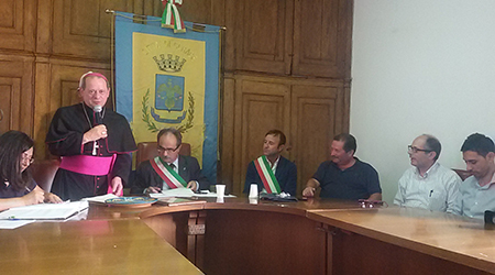 Queste le motivazioni contenute nella pergamena che il sindaco di Gerace, Giuseppe Varacalli, ha consegnato al vescovo di Locri-Gerace, mons. Francesco Oliva, durante la seduta straordinaria del Consiglio Comunale convocata per il conferimento dell’onorificenza. Alla seduta hanno presenziato insieme con le massime autorità territoriali dei Carabinieri e della Polizia di Stato, anche il sindaco di Papasidero (CS), paese natale di mons. Oliva, Fiorenzo Conte e, nella qualità di delegato del primo cittadino di Locri, Giovanni Calabrese, il presidente di quel consiglio comunale, Domenico Maio. Presenti, altresì, il vicario generale della Diocesi, mons. Cornelio Femia, il decano del Capitolo Cattedrale, mons. Francesco Laganà ed il parroco della Cattedrale di Gerace, don Piero Romeo, rappresentanti dell’Anc “Sez. D. Saraceno” di Gerace ed altri sodalizi culturali, l’on. Giuseppe Fimognari, già senatore e per varie consiliature sindaco del nuovo “Rinascimento” di Gerace. Espressioni di compiacimento e di condivisione per il conferimento della cittadinanza onoraria hanno riservato per il vescovo Oliva il consigliere di minoranza Angelo Gratteri, il direttore del Museo Diocesano, Giacomo Oliva, il vicario mons. Femia, il sindaco di Papasidero, Conte ed il presidente del civico consesso locrese, Maio. Il sindaco di Gerace ha quindi fatto omaggio al presule di Locri-Gerace, di un pregevole piatto (pezzo unico dipinto a mano), realizzato dal famoso artista Tony Custureri, riproducente lo stemma della città, secondo una tecnica ispirata alle ceramiche geracesi del XII secolo. Ringraziando per l’onorificenza conferitagli, mons. Oliva ha rivolto ai geracesi il seguente messaggio: “Ai Cittadini di Gerace salute e benedizione dal Signore! Posso da oggi considerarmi Vostro concittadino, anche se “onorario”. Lo dico con il cuore e l’affetto, che da subito ho provato per questa storica e bella cittadina. Mi onoro da questa sera di appartenere ad uno dei sette borghi più belli d’Italia. Lo sarò come Vescovo della Diocesi di Locri-Gerace, che ha visto la sua ordinazione episcopale nella solenne, storica e bella Cattedrale di Gerace, un monumento d’arte, indiscutibile testimone del percorso storico di questa nostra Chiesa. Confesso che da subito ho iniziato ad amarla e sento che mi appartiene non per meriti personali, ma per una predilezione dell’amore di Dio. So che il conferimento della cittadinanza onoraria non risponde ad alcun merito da parte mia. L’aver designato la Cattedrale di Gerace come luogo della mia ordinazione è stato solo per una scelta che rende onore ad una Chiesa ed ad una cittadina che si è costruita intorno alla “cittadella episcopale” e che ha saputo costruire la sua storia saldamente ancorata ad una tradizione di fede, che rimane indelebilmente scolpita nei suoi tantissimi monumenti sacri. Il riconoscimento che Questa Amministrazione Comunale, che ringrazio, ha voluto conferirmi mi onora al di là di ogni aspettativa. Ne avverto la responsabilità. Sento d’ora in avanti di poter condividere l’amore per una Città che fa dell’arte, della storia e della cultura un motivo d’attrazione, una missione ed una risorsa in più per il suo futuro sviluppo. Nel primo Anniversario dell’ordinazione episcopale, 20 luglio 2015”. Subito dopo mons. Oliva ha presieduto una solenne concelebrazione eucaristica nella Cattedrale di Gerace, la stessa in cui, il 20 luglio dello scorso anno, per sua scelta venne ordinato vescovo.