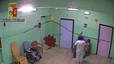 Un frame del video della Polizia di Stato sui maltrattamenti di anziani e disabili all'interno della Casa di riposo "La Consolata" di Borgo d´Ale, nel Vercellese. Le indagini, iniziate nell'agosto del 2015, hanno portato a 18 arresti. Vercelli, 19 febbraio 2016. ANSA/ Ufficio stampa Polizia di Stato +++ ANSA PROVIDES ACCESS TO THIS HANDOUT PHOTO TO BE USED SOLELY TO ILLUSTRATE NEWS REPORTING OR COMMENTARY ON THE FACTS OR EVENTS DEPICTED IN THIS IMAGE; NO ARCHIVING; NO LICENSING +++