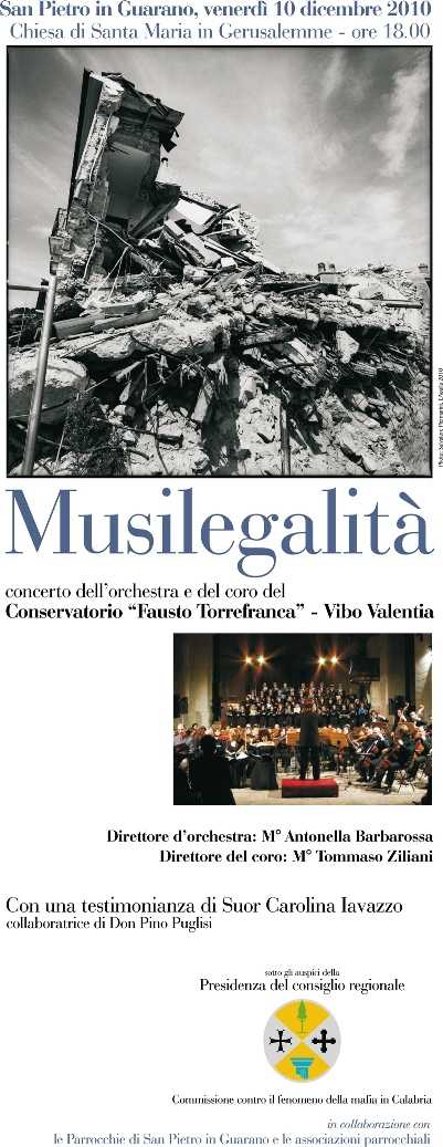 Liniziativa, organizzata in collaborazione con le parrocchie e le associazioni parrocchiali di San Pietro in Guarano, si svolgerà sotto gli auspici della Presidenza del Consiglio Regionale e della Commissione contro il fenomeno della mafia in Calabria, con una testimonianza di Suor Carolina Iavazzo, collaboratrice di Don Pino Puglisi, indimenticato sacerdote assassinato dalla mafia a Palermo nel 1993.