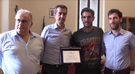 Nicolas Viola omaggiato con una targa dal sindaco