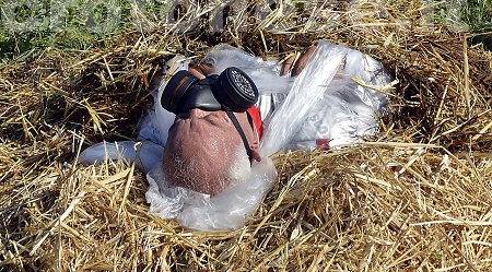 farsi seppellire dal letame e dopo aver indossato una maschera antigas, davanti