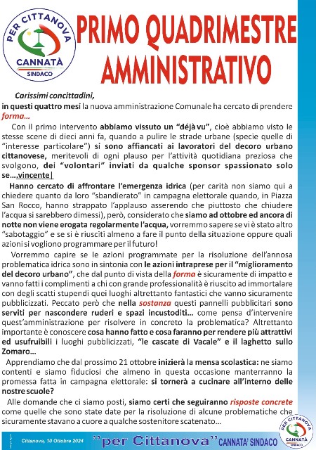 “Per Cittanova Cannatà Sindaco” interviene con un manifesto sul “Primo quadrimestre amministrativo”