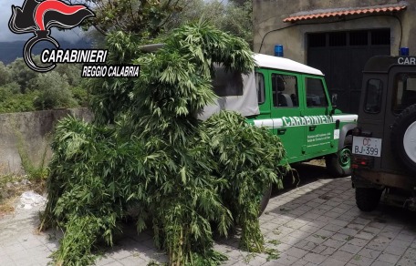 Nell’ambito di attivita’ info-investigative coordinate dal Reparto P.N. Aspromonte, i militari della Stazione CC Parco di Oppido Mamertina (RC) si sono resi autori del ritrovamento di una piantagione di canapa indiana (cannabis indaca) e, dopo aver avvisato il magistrato di turno della procura della Repubblica del tribunale di Palmi, hanno proceduto all’estirpazione ed al sequestro di 485 piante. Le stesse, con altezza variabile da 1,50 a 2 metri circa, ben occultate tra la fitta vegetazione, sono state rinvenute nel comune di Santa Cristina d’Aspromonte, nella localita’ “Panacuma”, in una zona impervia e diffficile da raggiungere, all’interno del Parco Nazionale dell’Aspromonte, e risultavano coltivate lungo terrazzamenti ricavati su un costone inaccessibile, con un sistema di irrigazione a goccia costituito da tubi in pvc che consentiva il regolare apporto di acqua alle lussureggianti piante da un vicino torrente. Quest’ultime erano ormai prossime ad essere tagliate e successivamente essiccate per la produzione di marijuana, che avrebbe portato ad un giro d’affari di circa 200 mila euro al mercato al dettaglio. Nel corso dell’operazione sono stati rinvenuti e sequestrati anche gli attrezzi, nello specifico un zappa, un piccone e una falce, utilizzati per la coltivazione delle piante. Le stesse, tranne 10 unita’ lasciate intere come campionatura per le successive analisi chimico-fisiche atte a verificare la presenza del principio attivo delta9-thc, sono state trasportate a Oppido Mamertina nel terreno annesso alla stazione, dove, su disposizione del magistrato di turno, sono state distrutte mediante abbruciamento. Proseguono tutt’ora le indagini volte all’individuazione dei responsabili della coltivazione abusiva.