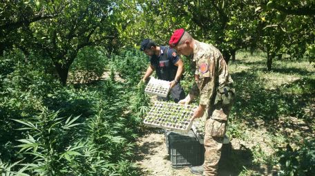 La scorso giovedì, a Candidoni (RC), alla Contrada Baronia, località vicina alle sponde del fiume Mesima, i Carabinieri della Tenenza di Rosarno e della Stazione di Melicucco, con l’ausilio dello Squadrone Eliportato Cacciatori “Calabria” e della Compagnia Speciale di Vibo Valentia, hanno tratto in arresto STILO Vincenzo, di anni 67 da Rosarno, già noto alle FF.OO., e un bracciante agricolo 26 enne, originario del Burkina Faso e residente a Rosarno, colti nella flagranza del reato di concorso in produzione, coltivazione e traffico di ingente quantitativo di sostanza stupefacente. I predetti sono stati sorpresi all’interno di una piantagione, costituita da 1.380 piante di canapa indiana – del tipo “olandese nana skunk” – dell’altezza media di mt. 1,5 – in pieno stato vegetativo, di cui 500 in contenitori di polistirolo pronti per l’innesto, per un peso complessivo di circa kg. 270 di stupefacente.