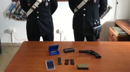 – pistola clandestina calibro 357 magnum contenente nel tamburo di n. 6 cartucce, perfettamente funzionante e pronta allo sparo;