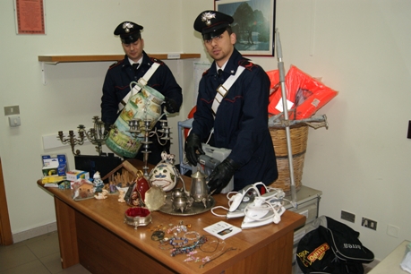 PIZZO CALABRO – Da settimane i furti nel comune di Pizzo si erano moltiplicati ed a farne le spese erano stati, oltre alle abitazioni dei cittadini, anche il comune e la scuola elementare di S. Sebastiano, dove i soliti ignoti si erano introdotti asportando addirittura i presepi realizzati dai bambini. Una serie di reati che aveva gettato nell’apprensione tutta la cittadinanza che, ormai, aveva paura di lasciare le proprie abitazioni incustodite per il timore di trovarle svaligiate. Una serie di reati a cui i militari della locale Stazione Carabinieri non si sono mai rassegnati, così come non hanno rinunciato all’idea di arrivare al recupero della numerosa refurtiva. La svolta è arrivata nella prima mattinata di ieri quando i Carabinieri del Comando Compagnia di Vibo Valentia hanno fatto irruzione all’interno dell’appartamento di E.F., pluripregiudicato pizzitano ben noto agli uomini dell’Arma. I Carabinieri hanno passato al setaccio l’abitazione dell’uomo rinvenendo un vero e proprio tesoro. Infatti le stanze della casa erano letteralmente ingombre degli oggetti trafugati nelle scorse settimane. I militari dell’Arma, che per inventariare tutto il materiale rinvenuto hanno impiegato oltre 4 ore, alla fine hanno recuperato 4 candelabri in ottone ed argento, numerosi oggetti di arredamento in ceramica quali vasi ed altri oggetti decorativi, elettrodomestici, materiale informatico, i presepi trafugati presso la scuola S. Sebastiano, un intero servizio da tè in argento, materiali per il bricolage, vario materiale per la nautica ed addirittura delle reti da pesca. Un bottino di alcune migliaia di euro che è stato immediatamente sequestrato, in attesa di essere restituito ai legittimi proprietari, mentre il pregiudicato è stato deferito alla Procura della Repubblica di Vibo Valentia con l’accusa di ricettazione. Anche con l’avvio del nuovo la lotta alla criminalità da parte delle Benemerita non si è affatto arrestata e prova ne sono i numerosi risultati già raggiunti nei primi giorni del 2012.