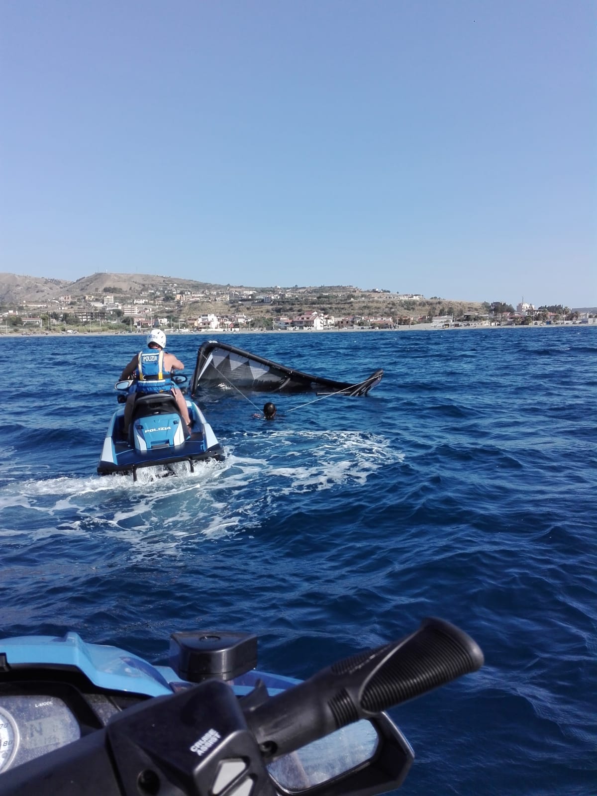 Nel pomeriggio del 27 luglio scorso, nell’ambito dell’attività di prevenzione e soccorso pubblico di competenza, personale della Polizia di Stato della Squadra Nautica ha prestato soccorso ad un giovane Kitesurfer che si trovava in difficoltà a largo della costa reggina. In particolare, gli Agenti, impegnati nel servizio di vigilanza costiera ravvicinata dei litorali, per monitorare eventuali comportamenti illeciti a discapito della sicurezza della balneazione, al largo di Pellaro, hanno notato un giovane Kitesurfer che, a cause delle condizioni meteo-marine, è stato trasportato alla deriva lontano dalla costa. Gli operatori della Polizia di Stato, a bordo di 2 moto d’acqua, con non poche difficoltà, sono riusciti a prestare soccorso al malcapitato, grazie anche all’ausilio di un natante privato e di un equipaggio delle Volanti, pronto all’arrivo sulla costa a prestare le prime cure.