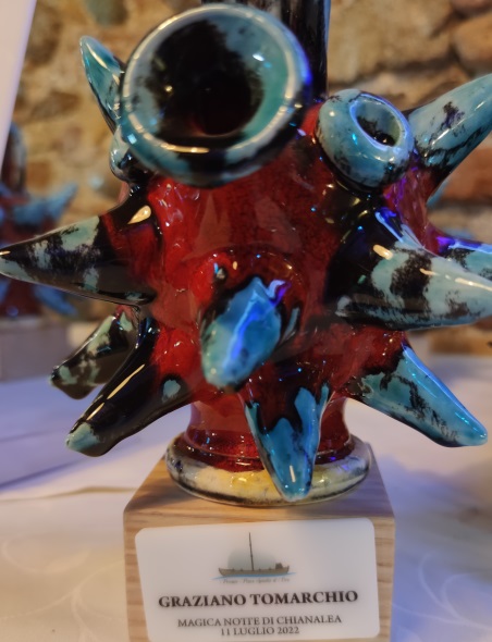 Il premio ricevuto è stato realizzato dal maestro ceramista Vincenzo Ferraro e rappresenta un riccio che nella tradizione scaramantica allontana il male