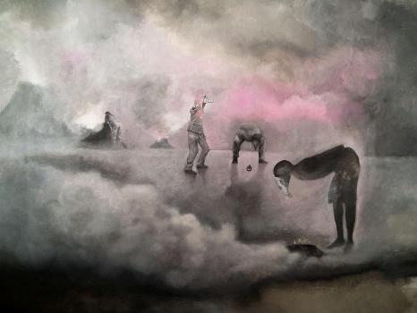 Miti e leggende occupano le sue tele intrise di atmosfere cupe e intossicanti in cui occorre usare degli stratagemmi antigas per sopravvivere.