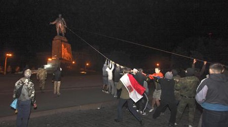 Intanto a Kharkiv è stata abbattuta la più grande statua di Lenin del Paese in una manifestazione a sostegno dell’unità.