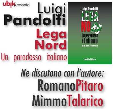 Oggi, alle 18, alla libreria Ubik di Cosenza, il consigliere regionale di Idv, Mimmo Talarico, interverrà alla presentazione del pamphlet intitolato “Lega Nord. Un paradosso italiano in 5 punti e mezzo”. Talarico discuterà di Lega Nord, Federalismo e Mezzogiorno con l’autore, Luigi Pandolfi, ed il giornalista Romano Pitaro. Il volume è edito da Laruffa. Pandolfi è un giovane intellettuale calabrese che unisce all’impegno politico ed istituzionale la passione per gli studi storici e politologici. Laureato in Scienze Politiche presso l’Università degli Studi di Perugia, ha pubblicato “Dalla lotta all’organizzazione, il caso del Pci a Saracena”; “Destra, correnti ideologiche e temi culturali nell’Italia repubblicana”; “Un altro sguardo sul comunismo, teoria e prassi nella genealogia di un fenomeno politico”.