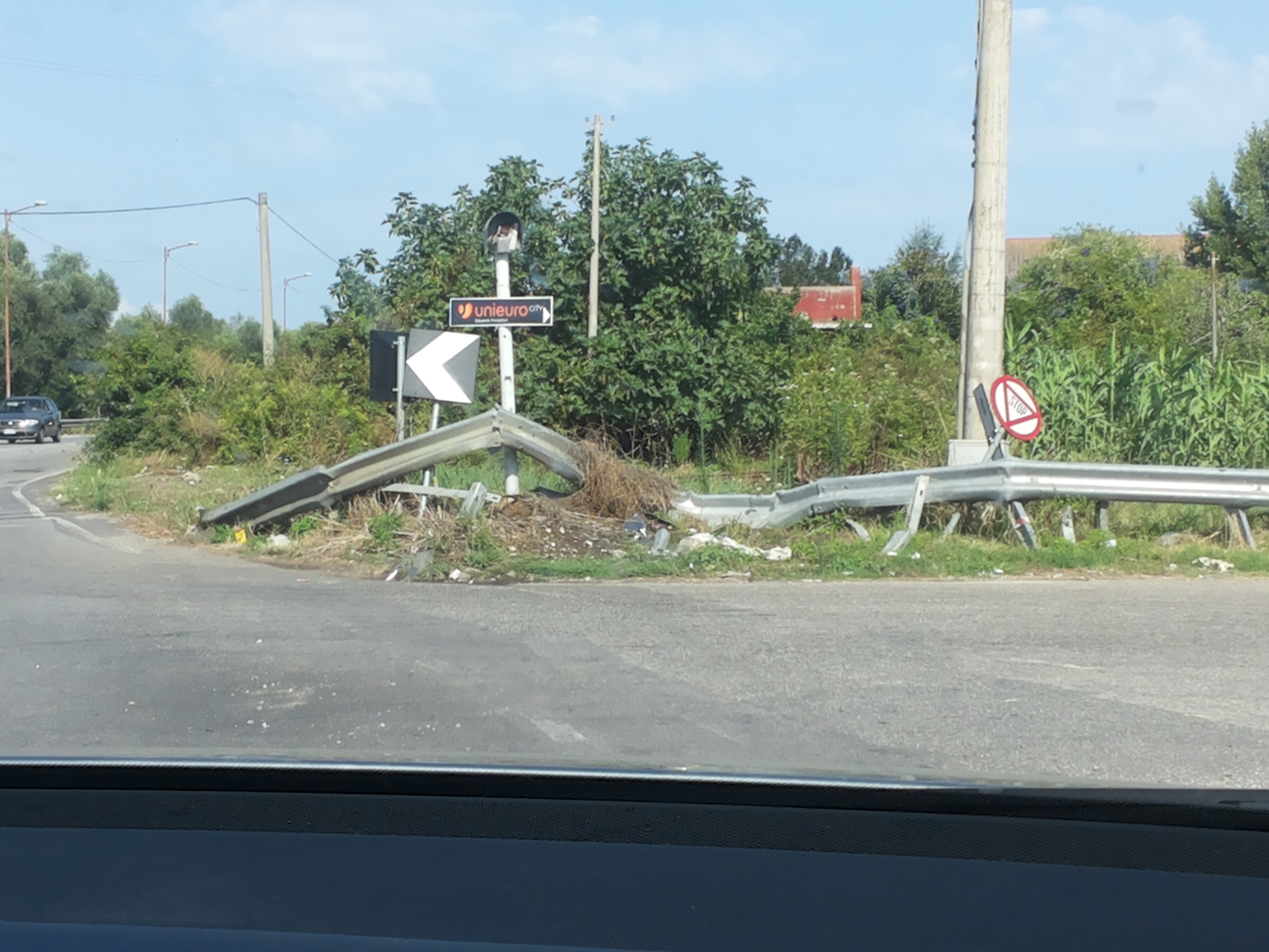 aberranti condizioni, guard rail gravemente danneggiato e divelto e segnaletica