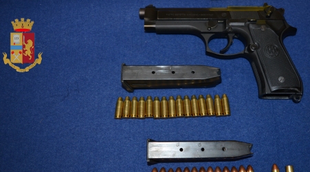 I due Agenti provvedevano, immediatamente, a mettere in sicurezza il rapinatore non prima di avergli immobilizzato la mano armata e nonostante il pronto intervento, lo stesso riusciva ad esplodere un colpo d’arma da fuoco al loro indirizzo che impattava contro la cassa senza provocare danni agli Agenti o ai dipendenti. Il rapinatore veniva immediatamente bloccato, disarmato e sottoposto a perquisizione personale che consentiva di rinvenire nella tasca sinistra posteriore dei pantaloni, un caricatore bifilare per pistola semiautomatica rifornito con quindici cartucce, oltre ad una singola cartuccia sfusa. Il soggetto veniva quindi tratto in arresto e condotto in Questura per gli adempimenti di rito a suo carico. Si rappresenta che il cassetto del registratore di cassa era stato asportato dalla sua sede e veniva rinvenuto sul pavimento del vano cucina, nel punto in cui il rapinatore aveva avuto la colluttazione con i due dipendenti. L’incasso contenuto nel registratore di cassa era di circa novecento euro in contanti che venivano riconsegnato al responsabile dell’esercizio commerciale.