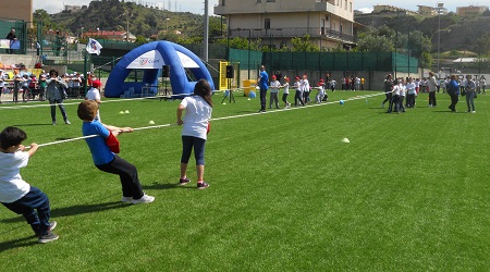 I protagonisti della giornata sono stati accolti dal Coordinatore del Settore Giovanile e Scolastico Calabria, Massimo Costa, e guidati dallo staff federale, hanno lasciato i libri di scuola per catapultarsi sul rettangolo verde dando sfogo ai veri valori del calcio, primo fra tutti il rispetto, che è stato il valore di riferimento di quest’anno. La festa, introdotta dall’immancabile Inno d’Italia, è stata un susseguirsi di attività ludiche e giochi motori con la palla, eseguiti a conclusione delle attività svolte nei mesi scorsi a scuola con l’aiuto dei collaboratori del Settore Giovanile e Scolastico Calabria, laureati in scienze motorie, che hanno coadiuvato gli insegnanti. Nel corso della mattinata, per riscoprire i giochi di un tempo e assaporarne la semplicità e genuinità, sono stati anche proposti staffetta, corsa coi sacchi e tiro alla fune. E a fare da cornice alla manifestazione non sono mancate simpatiche coreografie.