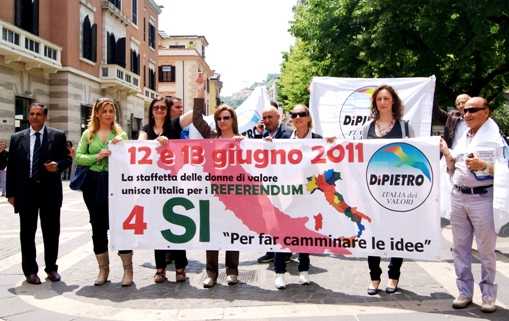 “Data la poca informazione imposta dal governo – dicono la Massenzio e la De Fazio- noi Donne IdV abbiamo sentito il dovere di andare nelle piazze a parlare, a scambiarci idee e informazioni, ciò per mettere al corrente di cosa e perché siamo stati chiamati al voto. Per questo inviteremo la gente a votare sì ai referendum del 12 e 13 giugno per dare un ulteriore segnale a questo governo che il vento è cambiato davvero e l’ora del berlusconismo volge ormai al termine. Le Donne dell’Idv lavorano per rafforzare la svolta verso il cambiamento, il referendum è il primo passo per costruire un futuro nuovo. Noi dell’Italia dei Valori, abbiamo portato due milioni e duecento mila firme in Cassazione, per i referendum sull’acqua, il nucleare e il legittimo impedimento dimostrando una capacità rara nella politica italiana, quella di prevenire i problemi, raccogliendo le firme per fermare il nucleare, un anno prima di Fukushima, quando la concretezza del pericolo nucleare era da troppi sottovalutata e minimizzata. Abbiamo raccolto le firme – dicono ancora le due responsabili – per il referendum sul legittimo impedimento, dimostrando che la politica quando ci crede è in grado di fermare l’attacco alla Costituzione. Ora, attraversiamo l’Italia, regione per regione, per difendere i quattro referendum, perché “4 SI per far camminare le idee. Il referendum fa paura a questo Governo, perché restituisce la voce ai cittadini sull’uguaglianza di fronte alla legge e sulla difesa della nostra Costituzione, sulle scelte energetiche e sull’acqua come bene comune. Non è retorica, perché sui temi dell’uguaglianza, dell’accesso ad un bene primario indispensabile per la sopravvivenza come l’acqua e sulle fonti energetiche, si decide il futuro di un paese e delle future generazioni. Il futuro del paese è rimasto fuori dalla portata delle scelte di questa maggioranza. Dimostriamo che è invece l’interesse primario di tutti i cittadini”.