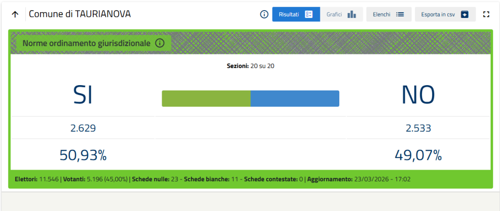 Referendum Costituzionale, a Taurianova vince il Sì con il 50,93% e il No al 49,07%