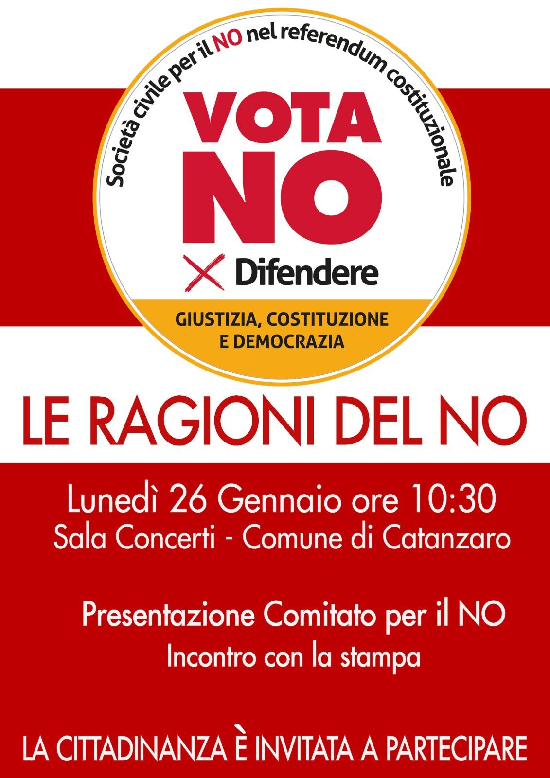 CATANZARO – 25 GENNAIO 2026. Si terrà domani, lunedì 26 gennaio, alle ore 10.30, nella Sala Concerti del Comune di Catanzaro, la conferenza stampa di presentazione del Comitato per il NO in vista del referendum costituzionale.