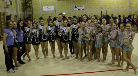 In serie D, nelle competizioni a squadra, le ginnaste reggine sono salite sul gradino più alto del podio sia fra le allieve che fra le senior. Fra le più piccole ha vinto la squadra A, totalizzando 32,400 punti. Ad esibirsi sono state Chiara De Girolamo, Giulia Fascì, Alice Malara e Vanessa Votano (corpo libero), Antonella Moro e Vanessa Votano (palla/nastro) e Alice Malara (cerchio). Sempre fra le allieve, la squadra B (Noemi Bevilacqua, Joanna Dalmazio, Valeria Meduri, Sara Meduri e Noemi Megale) si è piazzata al terzo posto con punti 27,700, alle spalle della società Kolbe di Palmi e precedendo la Kines di Catanzaro.Nella categoria open ancora un successo (punti 32,600) grazie alle performances della squadra C composta da Valeria Cannizzaro, Noemi Crupi, Maria Pia Nava, Maria Sinicropi e Francesca Spanti (corpo libero), Maria Pia Nava e Maria Sinicropi (palla/nastro) e Valeria Cannizzaro (cerchio).