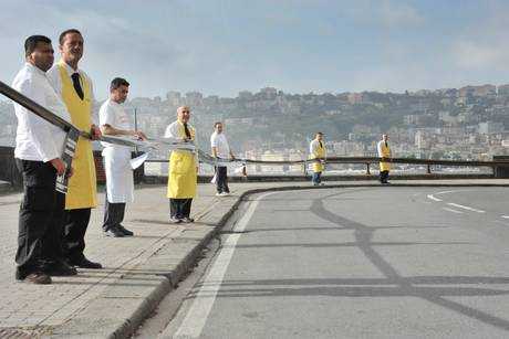 (ANSA) NAPOLI – Un lungo drappo nero, 5Km da Largo Sermoneta a Castel dell’Ovo, a Napoli, ha listato a lutto il lungomare. E’ partita cosi’ la protesta promossa dai Consorzi Borgo Partenope e Caracciolo Mergellina, contro la crisi dei rifiuti, la mancanza di progetti per il turismo e le lungaggini burocratiche per i permessi per gazebo e tavolini sui marciapiedi. Per tutta la giornata ristoranti, bar e chalet resteranno chiusi e il lungomare, per una sera, restera’ senza luci per la serrata.
