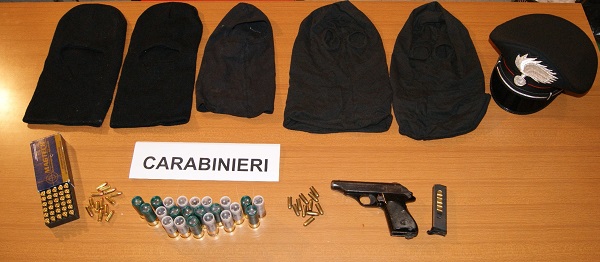 – n. 1 pistola cal. 7,65 con matricola punzonata marca “Bernardelli”, completa di caricatore con 7 colpi e n. 54 cartucce del medesimo calibro, nonche’ n. 2 passamontagna, il tutto nascosto all’interno di un pozzetto di ispezione idrica del quartiere Archi Cep;