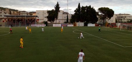 Pronti, via ed è subito Catalano a sfiorare il gol con un tiro dal limite deviato in angolo da Cetrangolo. E’ lo stesso numero 10, sempre in avvio di gara, ad imbeccare in profondità Faella che da buona posizione, però, non inquadra lo specchio della porta. Dopo 20′ di buon possesso palla, il Roccella trova il gol del vantaggio: Faella, sugli sviluppi di una palla inattiva, mette dentro un bel traversone per Cordova, che di testa batte il portiere. La rete consente ai padroni di casa di gestire senza troppi affanni il match fino al 45′, grazie ad un buon possesso palla e ad un’oculata fase difensiva.