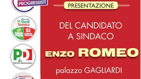 “Ci ritroveremo – aggiungono – a Palazzo Gagliardi alle 16,30 per presentare il candidato a sindaco Enzo Romeo, in vista delle elezioni comunali del prossimo giugno. All’appuntamento saranno presenti i rappresentanti nazionali e territoriali del Movimento 5 stelle, di Liberamente progressisti, di Alleanza verdi e sinistra, del Partito Democratico, del Centro studi Progetto Vibo e di Cultura sociale”.